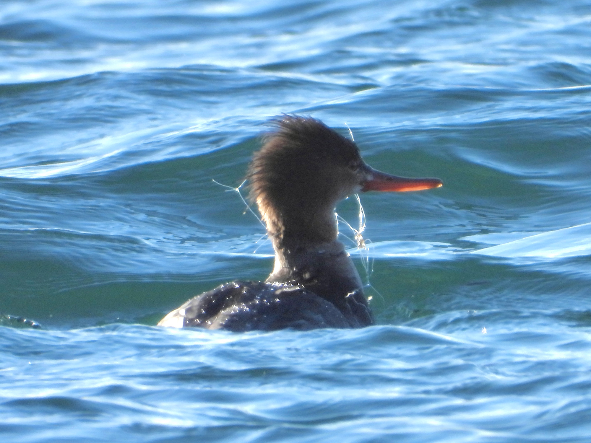 事例79. 釣り糸が翼や首に絡まったウミアイサ