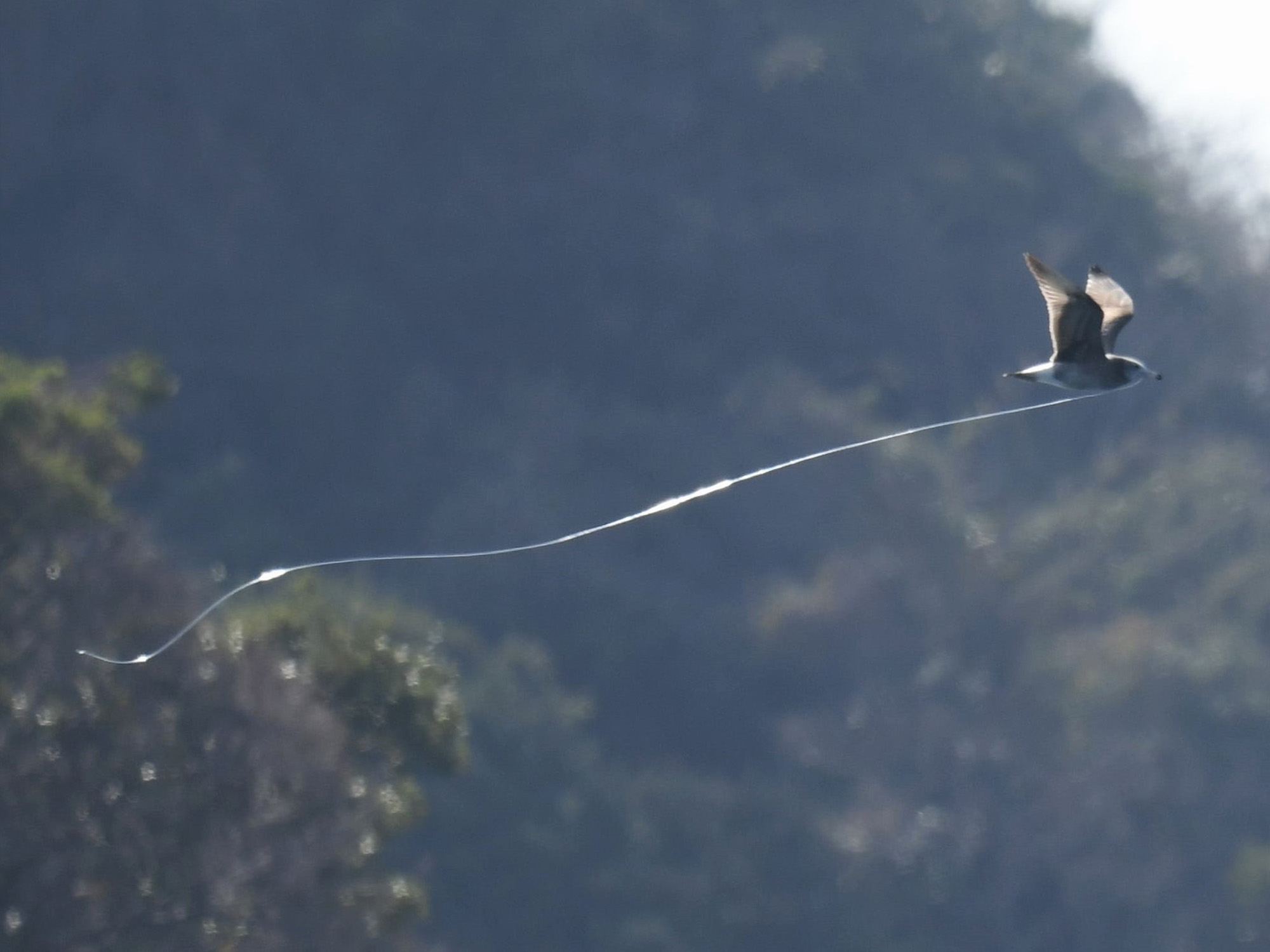 事例80. 釣り針を誤飲し、釣り糸を垂らして飛翔するウミネコ