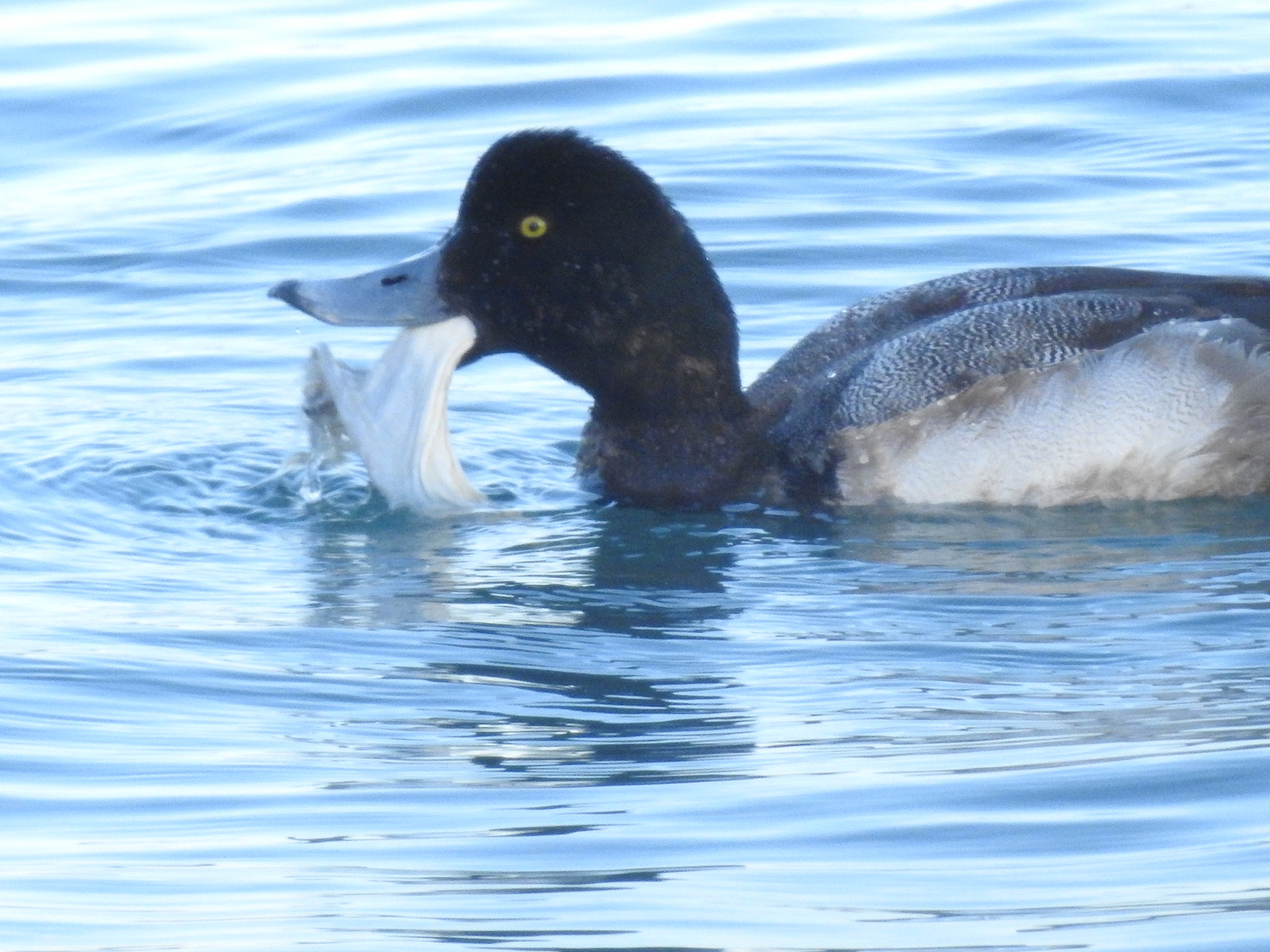事例82. 白いシート状の人工物を飲み込もうとしているスズガモ
