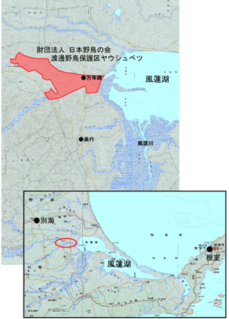 (財)日本野鳥の会(事務局:東京、会長:柳生博 会員・サポーター数約5万人)は、2008年12月18日、当会会員の渡邊玲子氏(わたなべれいこ・兵庫県)からの寄付金をもとに、タンチョウの生息する北海道野付郡別海町別海(べつかい)、奥行(おくゆき)の湿原352.4haを購入した。現地は、寄付者のお名前を冠した「渡邊野鳥保護区ヤウシュベツ」とし、恒久的に保全する。今回の保護区を含め、当会が野鳥保護のために設置した保護区は合計27ヶ所、面積は2621.0ha。このうちタンチョウを対象としたものは、20ヶ所、2516.6haとなった。