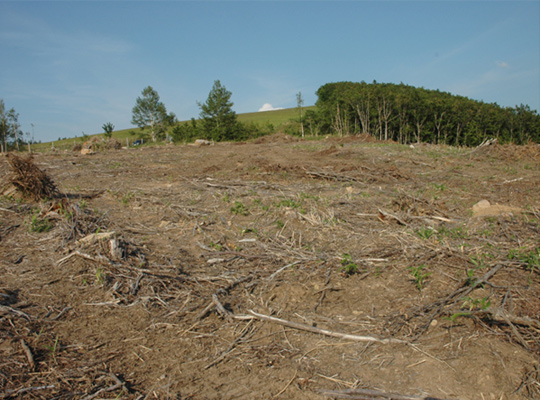 知床地方のプロジェクト実施地において、2010年6月4日から、植樹を実施します。植樹を行うのは、森林伐採跡の裸地で、当会が2009年に買い取り、保護区とした「持田野鳥保護区シマフクロウ知床」(面積15ha)の一部です。今回の植樹では、この保護区内の裸地1haに、地元網走管内で採種・育苗されたミズナラ・ハルニレ・ヤチダモ・イタヤカエデの4種類の広葉樹を各500本ずつ植樹します。来年以降も、継続して植樹を行ない、森林の回復に取り組む予定です。なお、シマフクロウの保護上、この保護区の位置や植樹場所については公表していません。