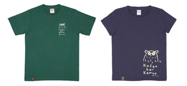 Tシャツのイラストは、日本野鳥の会のシマフクロウ保護事業のシンボルマーク。子どもから大人まで人気の絵本作家の村上康成氏の作品です。