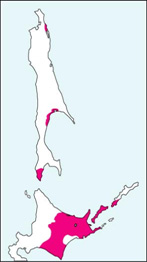 シマフクロウの生息分布この他、大陸に亜種マンシュウ
