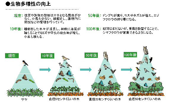 ①森林内の生物多様性の復元